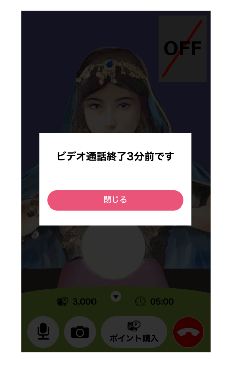 1,000ポイント以上保有していないと、オンライン通話をスタートできません。(ポイントの購入方法はこちら)