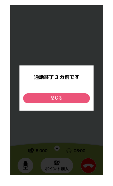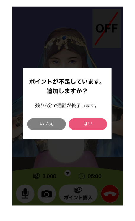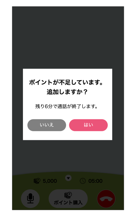 ポイントがなくなる6分前にポイント購入のメッセージが表示されます。