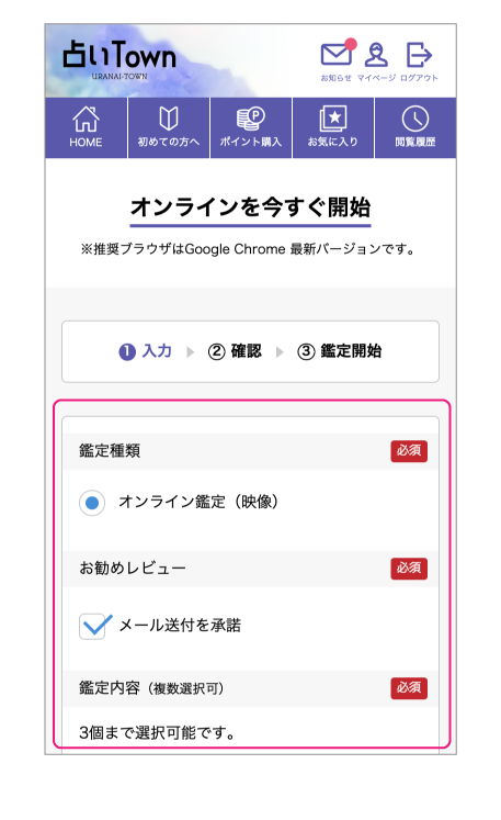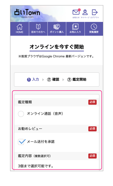オンライン鑑定を受けるには、1,000ポイント以上が必要ですので事前に購入してください。(ポイントの購入方法はこちら)