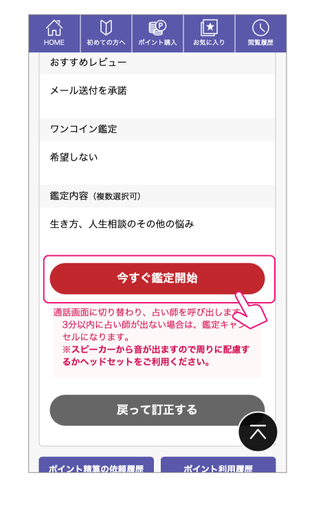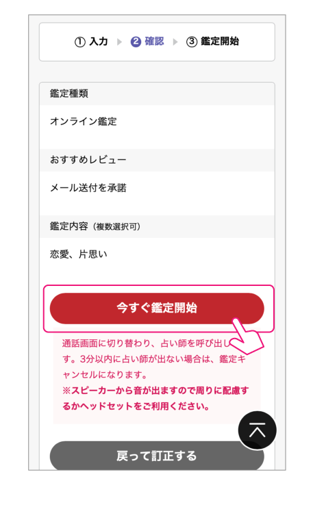 「今すぐ鑑定開始」ボタンをクリックします。