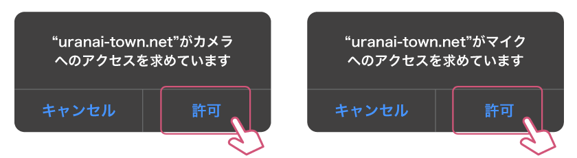 ※マイクやカメラへのアクセスを求めるポップアップが表示されたときは、必ず「許可」してください。